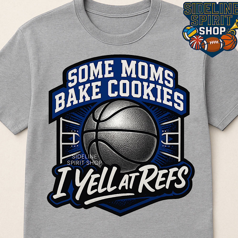 If you’ve ever lost your voice in the stands, this shirt is for you. The “Some Moms Bake Cookies, I Yell at Refs” basketball tee brings the perfect mix of humor and game-day energy. Designed with a bold basketball centerpiece and strong lettering, it’s a fun way to show your passionate support all season long.